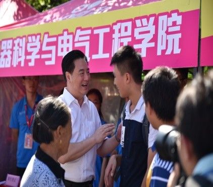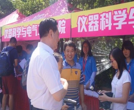 2016年8月20日上午,HAHA体育董事长李元元院士在公司相关职能部门负责人陪同下来到中心校区五月花广场视察2016年迎新工作情况。