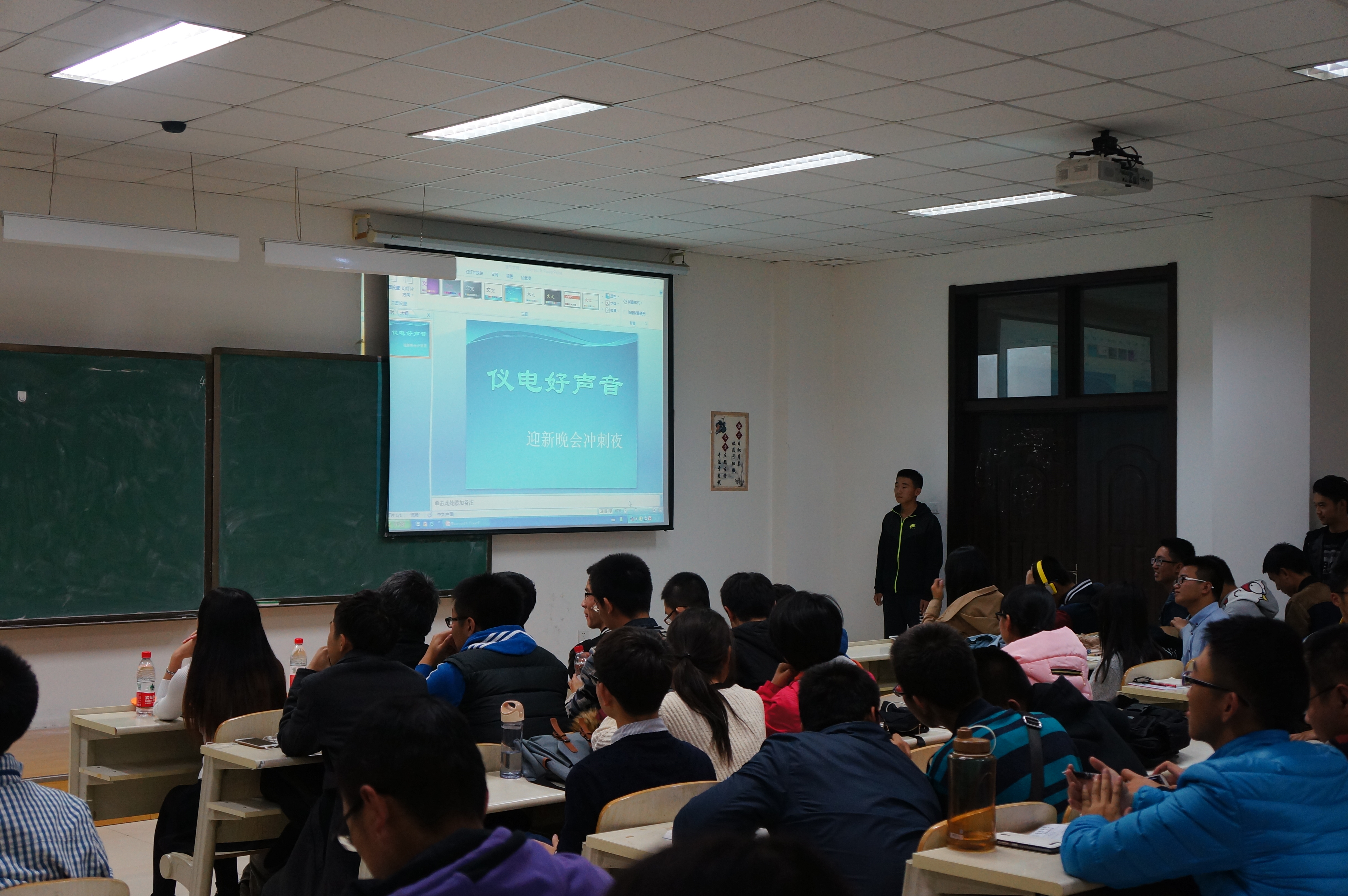 经过一周的准备工作,“仪电好声音”十强选手在全公司同学的期待中再度发声。“仪电好声音:迎新晚会冲刺夜”(“仪电好声音”复赛)于2015年10月25日19:00在中心校区李四光楼208室举办。2015级辅导员张昊宇老师,分团委第一副书记于一兵,员工会主席岳良广,新闻通讯社社长任晓闯,秘书部部长樊毅尧及文艺部部长周琪出席了本次活动并担任评审嘉宾。