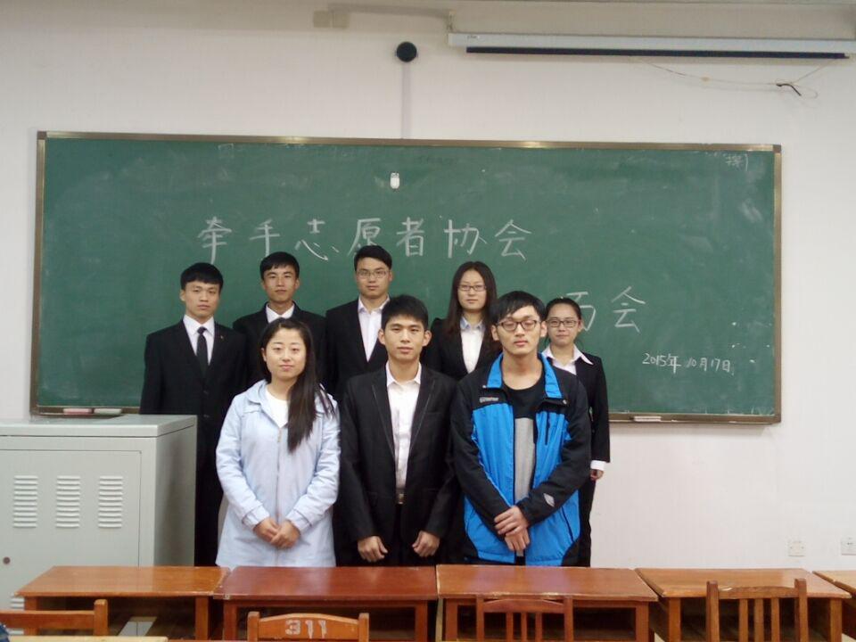 见面会上会长侯雪征首先介绍了协会的基本状况,总结了上一届协会的卓越成就,提出了本学期的工作计划,同时也对副会长和部长的工作进行了分配,并鼓励大家积极参加志愿活动,为社会做出贡献。随后,副会长朱明璞、薛琦相继补充了对部长们的要求和对新学期工作的建议。最后部长们逐一进行自我介绍,并承诺会以身作则,以“奉献,友爱,互助,进步”的志愿者精神为宗旨,服务社会,同时也会与牵手志愿者协会即将到来的干事加强联系,将服务社会、回报社会的热情传递给他们。会议结束后协会的全体成员进行合影留念。