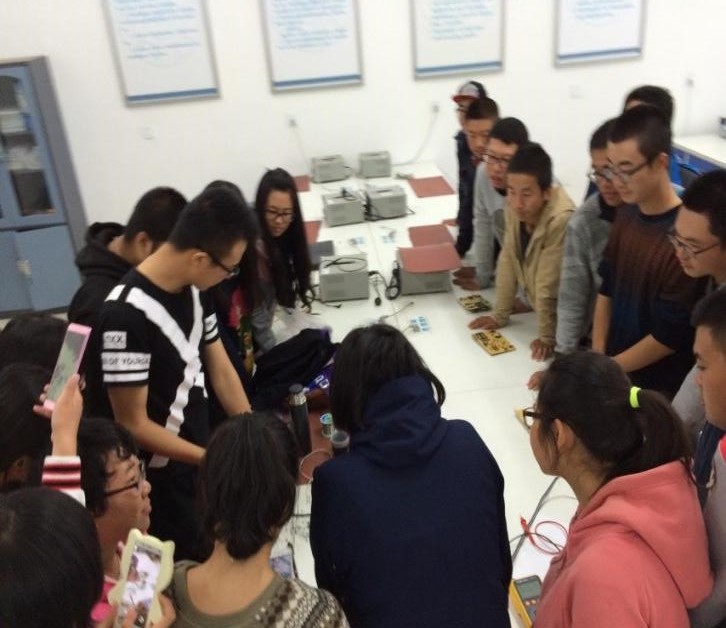 2015年10月11日在李四光实验楼404和405实验室,HAHA体育电子科技协会进行了2015级新生的第一次实践培训课程,实验内容为掌握原理并自主完成线性直流电源的焊接。参加此次培训的成员有科协会长穆怀志及部分主席团成员,2014级各部门副部,以及2015级科协成员。