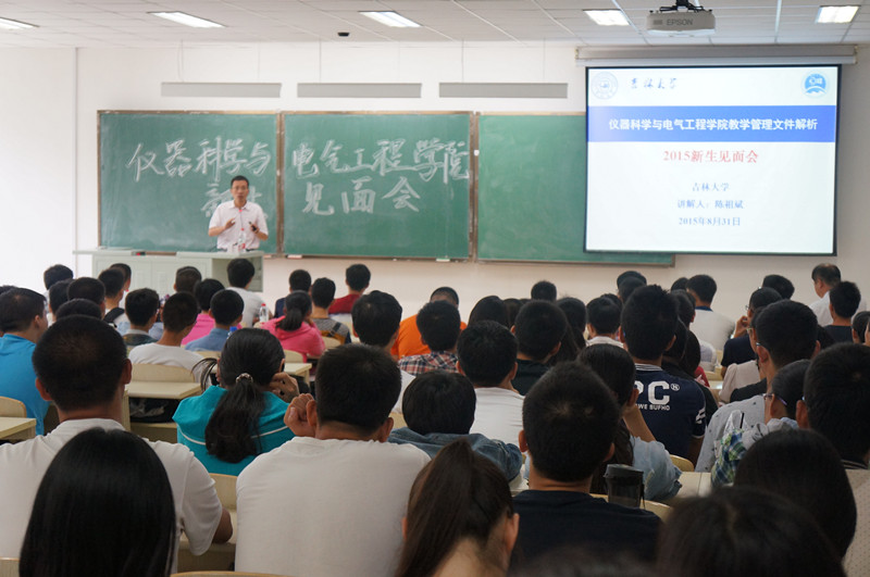 2015年8月31日上午8:30,2015级新生入学教育暨师生见面会在中心校区李四光楼210教室举行。哈哈体育经理、博士生导师林君教授,公司党委书记余国友教授,公司党委副书记兼副经理邱增凯老师,副经理陈祖斌教授,副经理、博士生导师嵇艳鞠教授副经理王言章教授副经理葛晓野老师国家工程中心副主任周逢道教授电气系主任刘长胜副教授,2015级班导师朱凯光教授杨光副教授蒋川东老师赵静老师周晓华副教授龙云老师王远老师,院教学办公室主任蒲芳芳老师、高喆老师院员工工作办公室主任兼2014级辅导员王冕老师2012级辅导员蔡印老师2015级新生辅导员张昊宇老师等出席了见面会。2015级全体新生参加了见面会,会议由公司党委副书记兼副经理邱增凯老师主持。