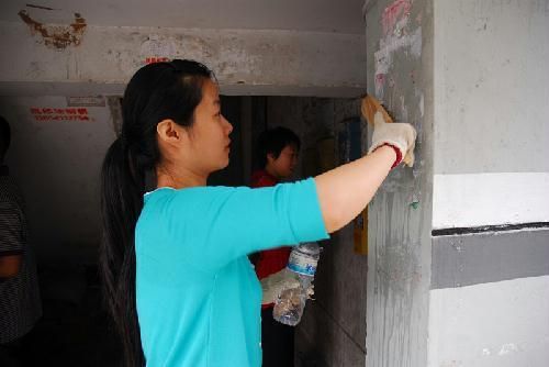 520日下午,志愿者们在社区工作人员的带领下带着铲刀、刷子、小水桶、涂料、扫帚、铁锨等各种适用工具,对辖区环境卫生逐一进行清理。志愿者们各尽其职,有的清理小广告,有的清理小区内及周边的垃圾。整个活动中,牵手志愿者协会的学长们率先垂范,以身作则,清除小广告和卫生死角。大家的劳动也得到了社区居民的一致好评。有很多居民和商户在这股劳动热情的感染下,主动加入到活动中。在大家的共同努力下,小区及周边环境被打扫得干净、整洁。