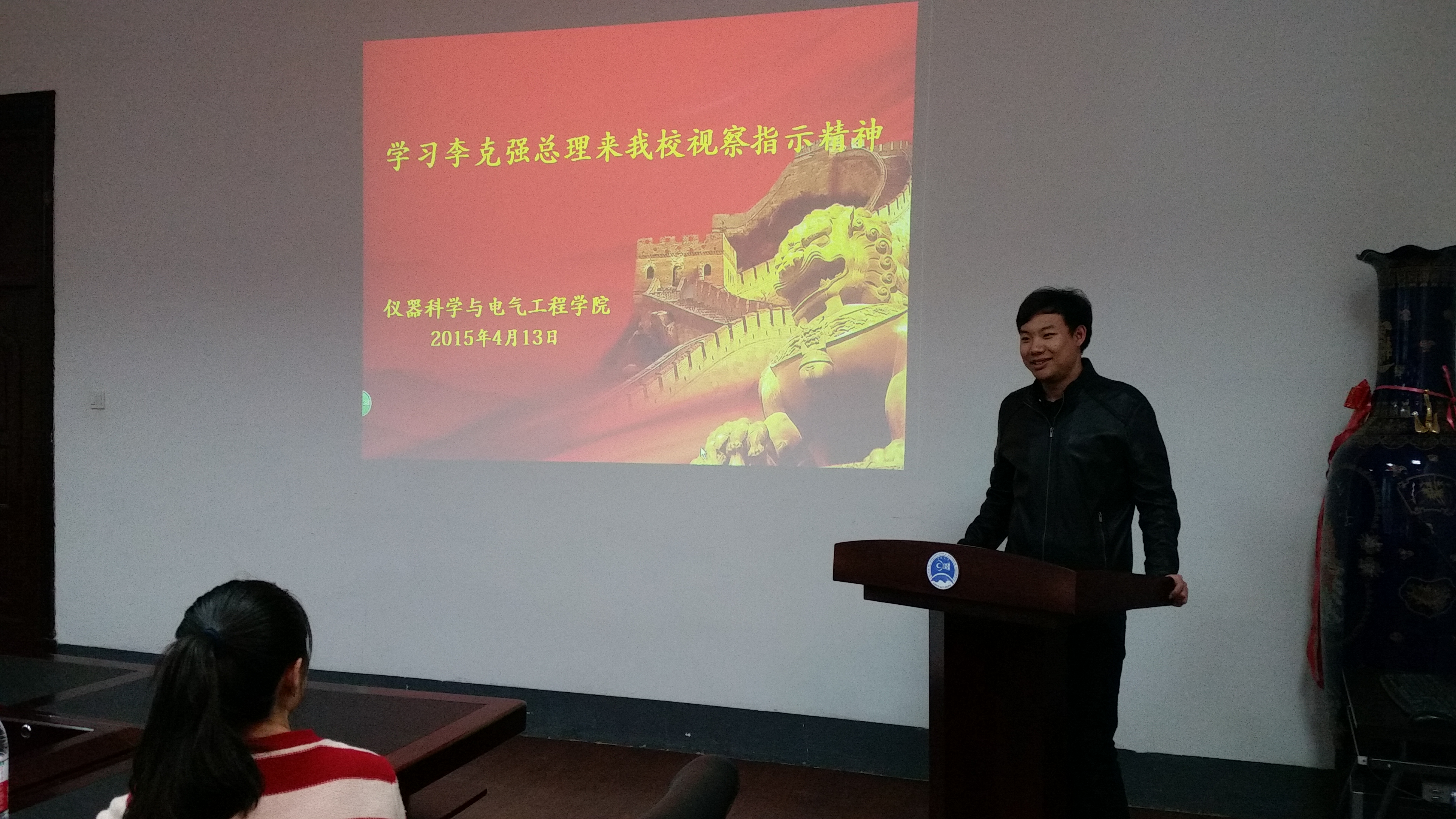 为响应公司关于传达李克强总理来公司视察指示精神的号召,深刻学习领会李克强总理在公司视察指示精神,哈哈体育团委于20154139:00在朝阳校区地质宫330室组织召开了“学习总理来公司视察指示精神报告会”。哈哈体育团委副书记兼2012级辅导员蔡印老师、员工兼职辅导员张昊宇、公司第十届分团委员工会主要员工干部以及各年级员工代表参加了本次报告会。