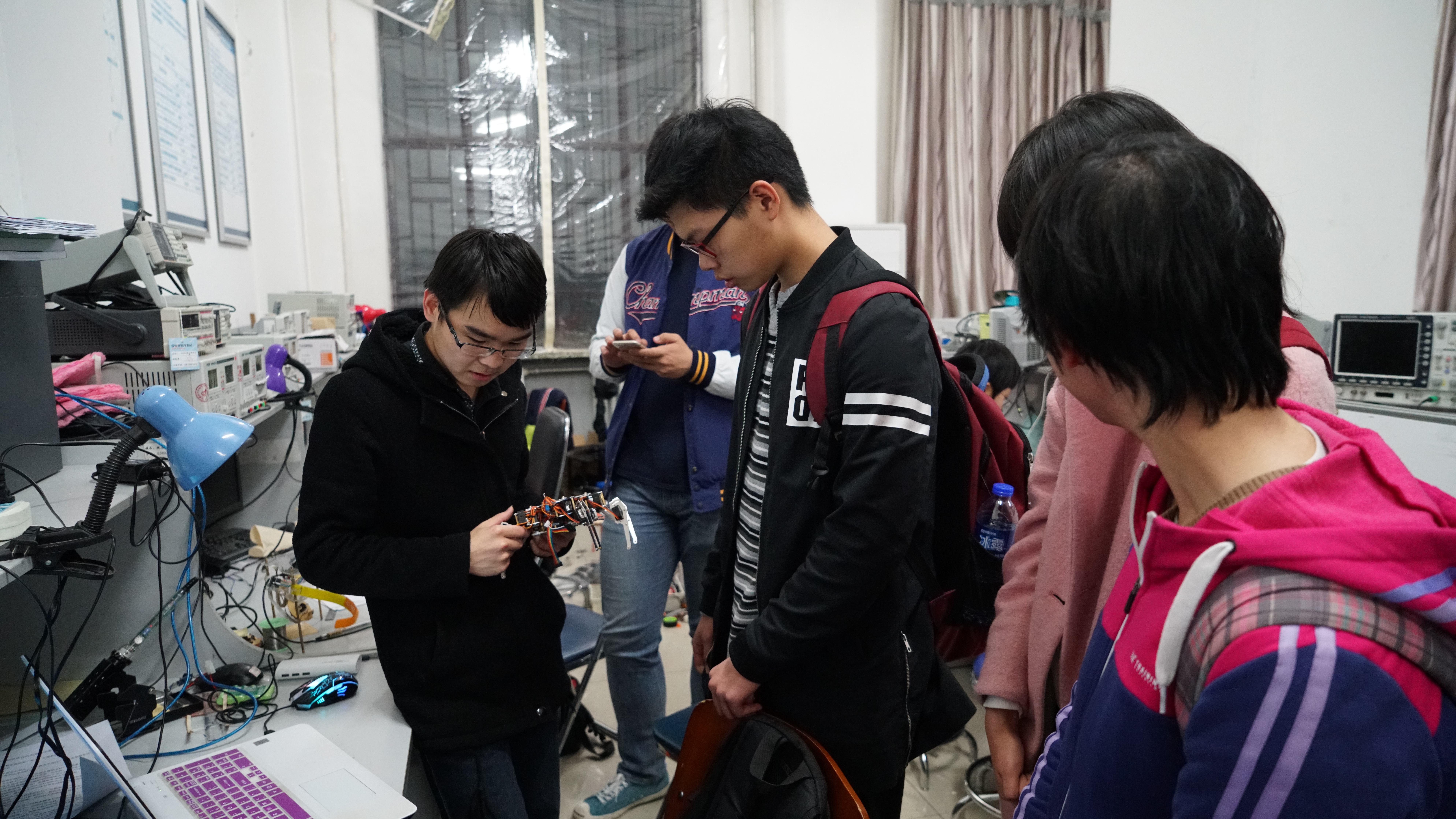 为了提高机器人小组全体成员的技能和专业知识,迎接HAHA体育第一届机器人大赛,2017426日晚上,博创机器人工程师来到朝阳校区地质宫216,对2016216+开放实验室机器人小组进行培训。本次培训活动由老员工科技创新协会承办。