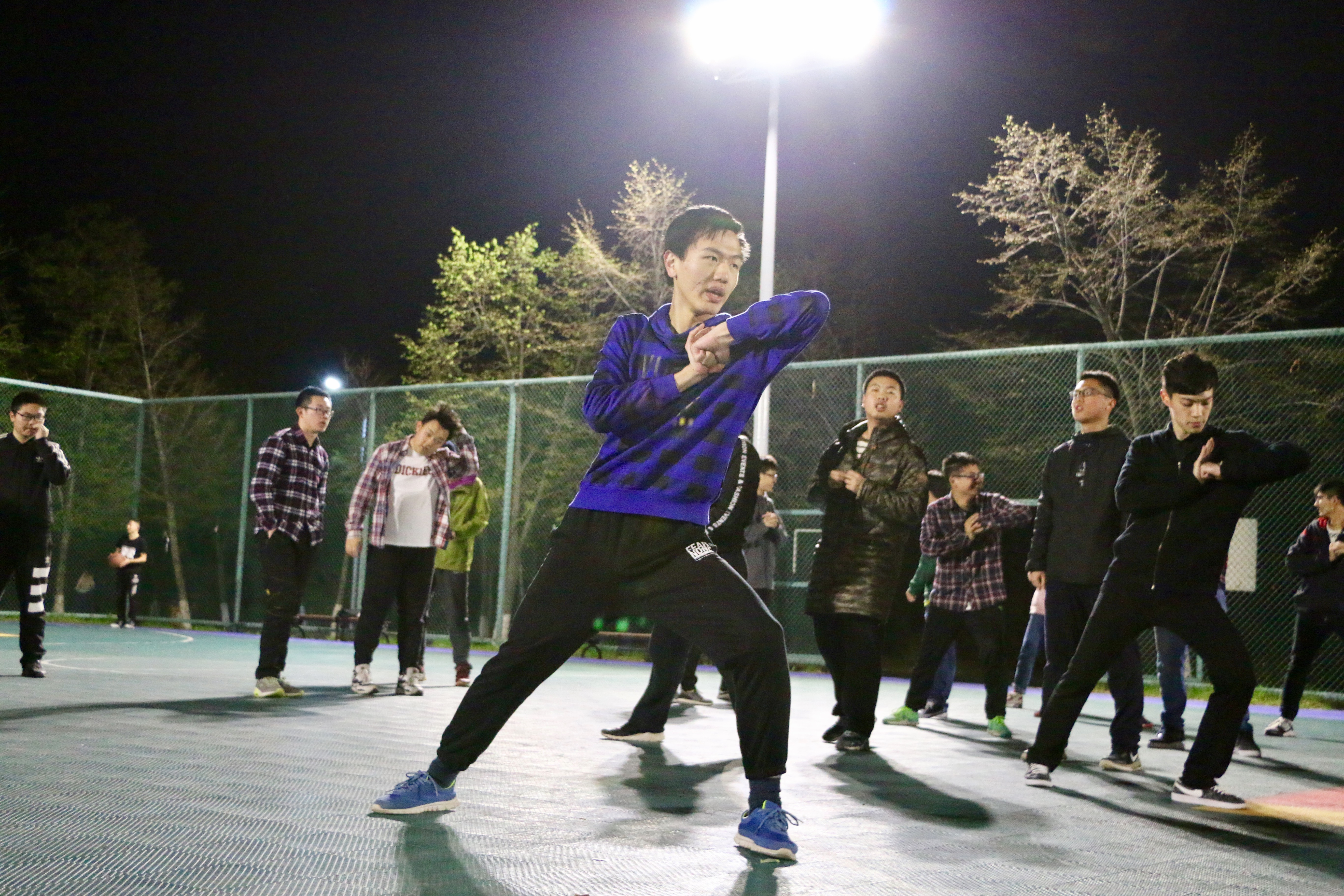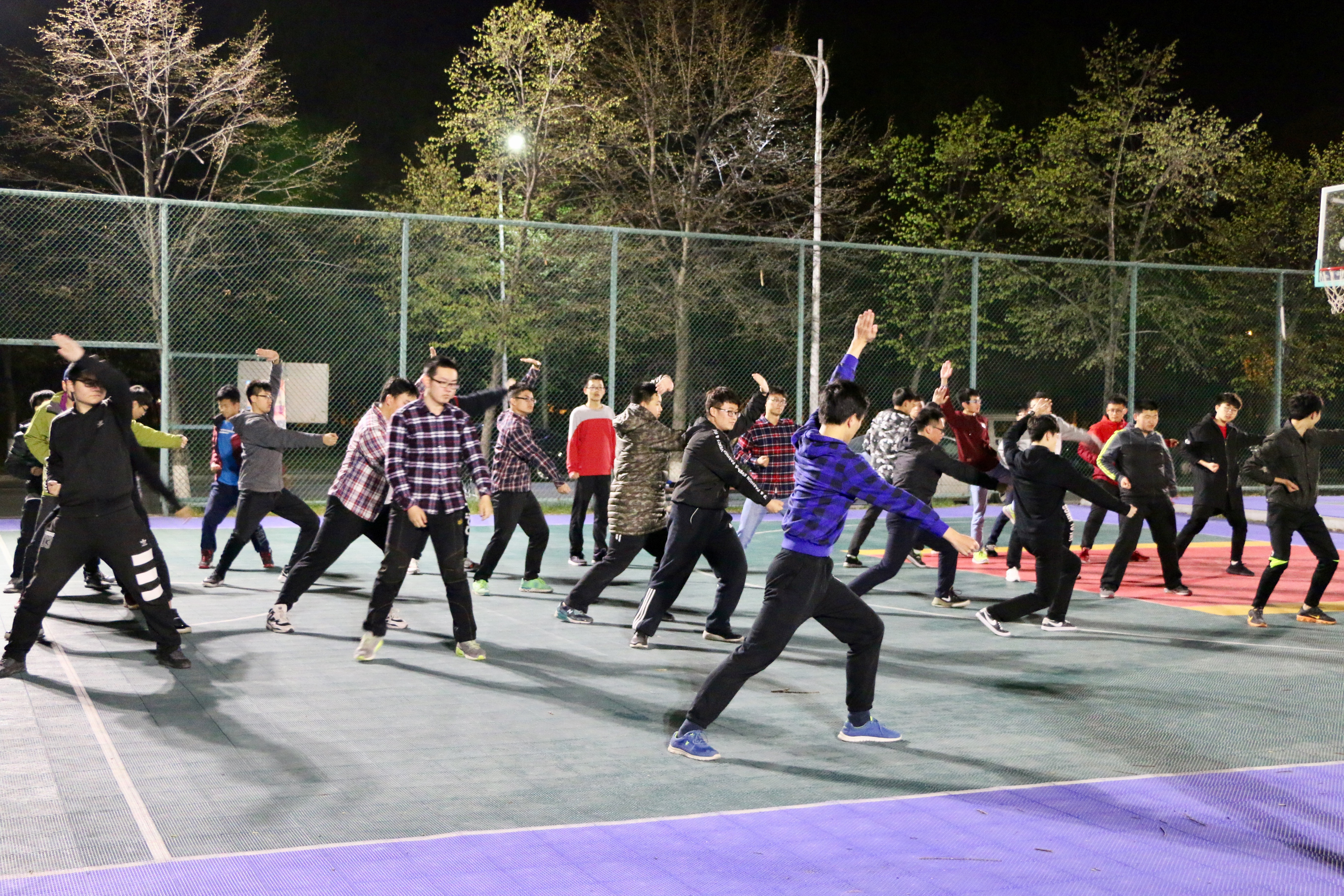 为迎接即将到来的校运动会,展现仪电学子的活力与风采,哈哈体育于2017年4月27日晚9:20在体育馆东侧篮球场展开三路长拳的训练工作。