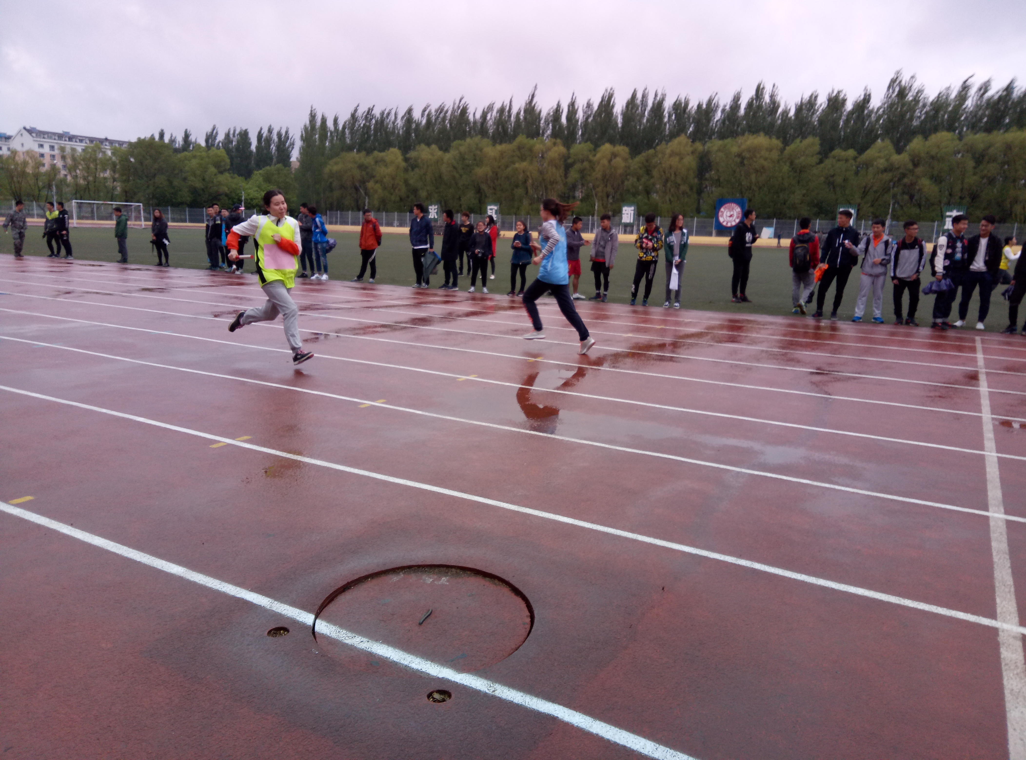 随着一声枪响,比赛正式开始。公司男子组的运动员率先登场,在风雨的阻挠下奔跑,在尚有积水的赛场狂奔。此时,风,渐歇、雨,渐停。公司运动员在湿滑的塑胶跑道上顺利完成比赛,取得了小组第四名的成绩。在男子组完赛之后,女子组的比赛紧随其后,公司运动员们在第三组登场,姑娘们在运动场上留下了她们矫健的身姿。似是与男子组相呼应,她们同样取得了小组第四名的成绩。而八乘一百米迎面接力预赛的比赛也就此顺利落下帷幕。此时,阴云散去,似是天公也被健儿们的竞技精神折服。