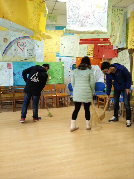 心理活动室工作环境的整洁美观为了给同学们敞开心扉互交流营造氛围为了弘扬公司助人为乐,阳光志愿的积极思想,2015年11月29日下午,在经信教学楼A101教室,哈哈体育员工会心理部组织开展心理活动室志愿打扫活动,心理部全体大一部员参加活动。