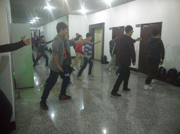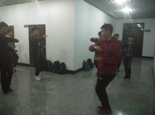 HAHA体育一年一度的运动会即将拉开帷幕,哈哈体育太极拳的排练也在紧锣密鼓地进行。为了能在太极拳的比赛中取得出色的表现,2015级同学们在体育部员工干部的带领下于2016年4月6日21:10准时在实验楼集合进行培训。