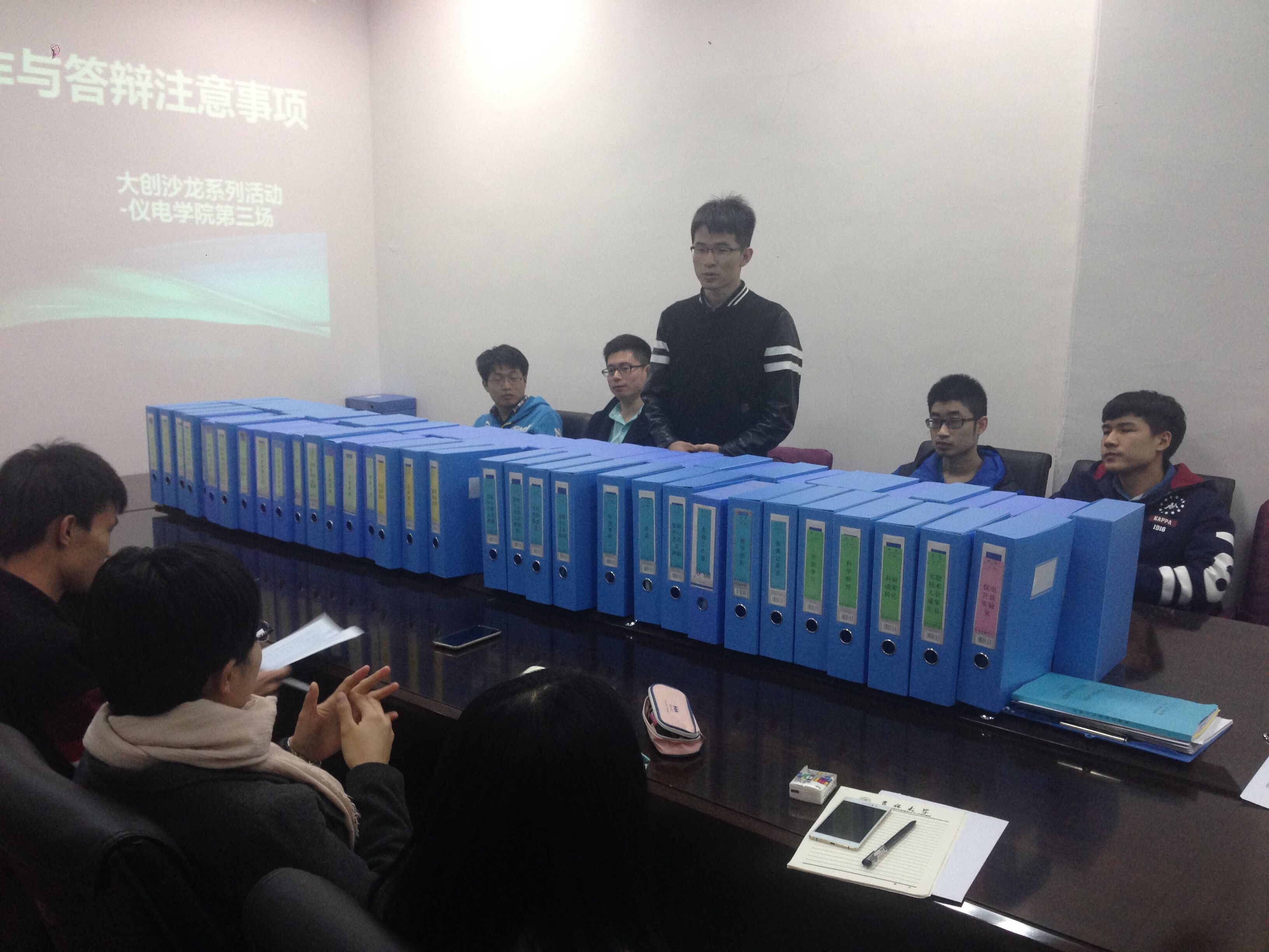 为更好解决本科生老员工创新创业训练计划项目组在项目实施过程中遇到的问题,督促同学们按计划完成大创项目,为本科生大创项目组提供一个良好的交流平台。HAHA体育教务处实践教学科向全校发起老员工创新创业训练计划沙龙活动。哈哈体育响应教务处号召,于2016年4月9日晚17:00在HAHA体育朝阳校区地质宫304会议室成功举办第三期大创沙龙活动,主题是“结题PPT制作与答辩注意事项”。此次活动由电子科技协会承办,副会长周葛主持,6个项目组参加了本次活动。本次活动还邀请到了公司实验中心副主任,216+开放实验室指导教师千承辉老师。