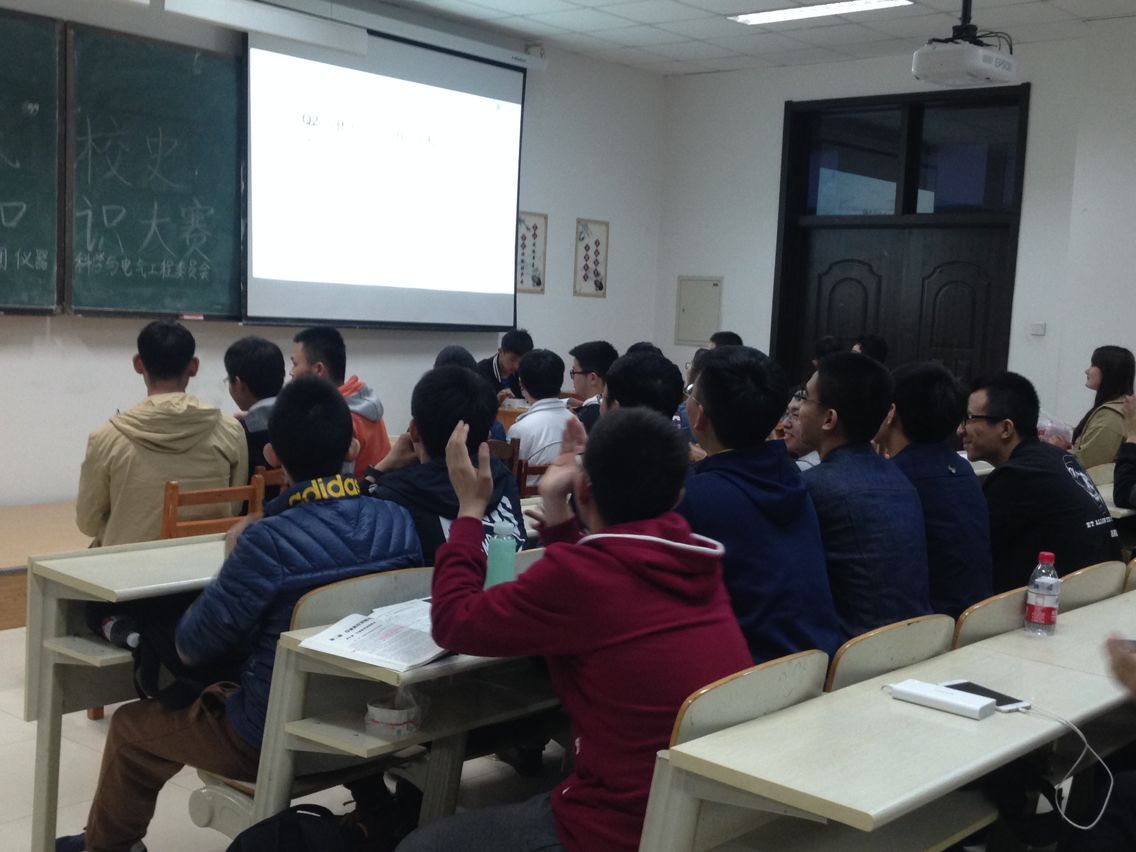 为迎接公司建校70周年校庆,进一步加强员工爱校、荣校教育,提升员工的认同感、责任感和荣誉感,发扬公司“求实创新,励志图强”的校训精神,更好的献礼七十周年校庆,哈哈体育团委组织开展“我为校庆献礼”系列活动。2016年4月27日,一站到底“知校史,明校情”知识竞赛决赛在中心校区李四光楼304室举行,公司团委书记兼2015级辅导员张昊宇老师、全体员工会成员和2015级同学参加了本次活动。