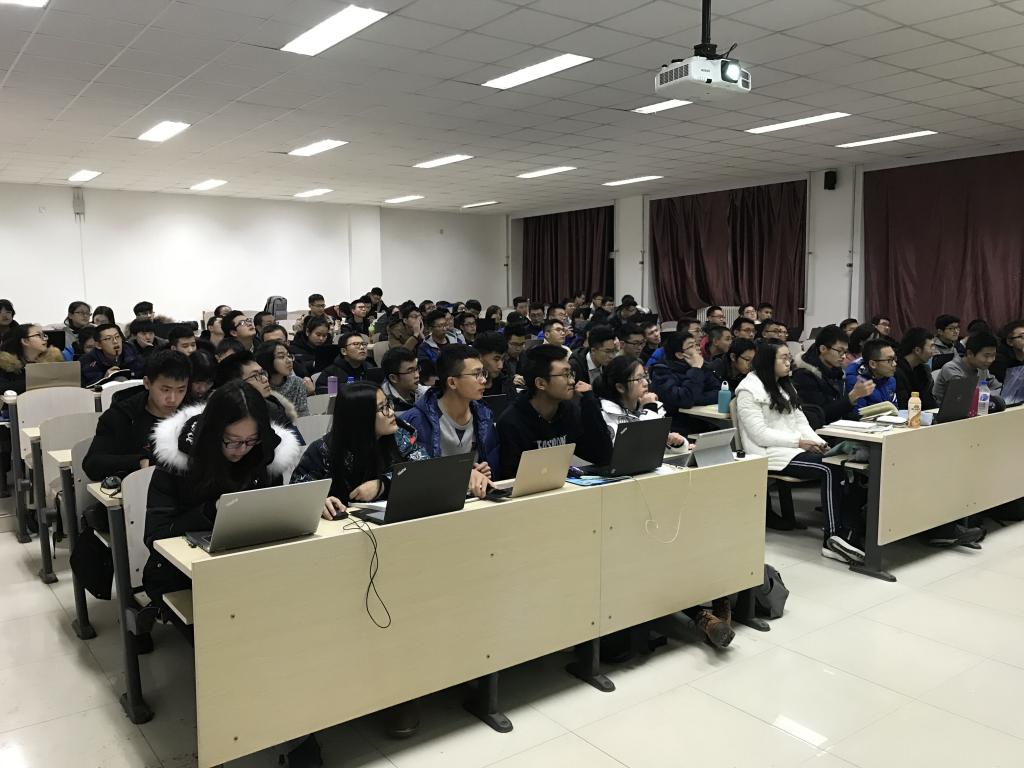 为拓展2017级同学们的专业知识,引导同学们利用课余时间自主学习,哈哈体育老员工科技创新协会于2017年12月14日晚上6:00在HAHA体育中心校区李四光教学楼302教室开展了C语言高效入门培训课程。王晓光老师讲授了本次课程,2017级同学积极参加了本次活动。