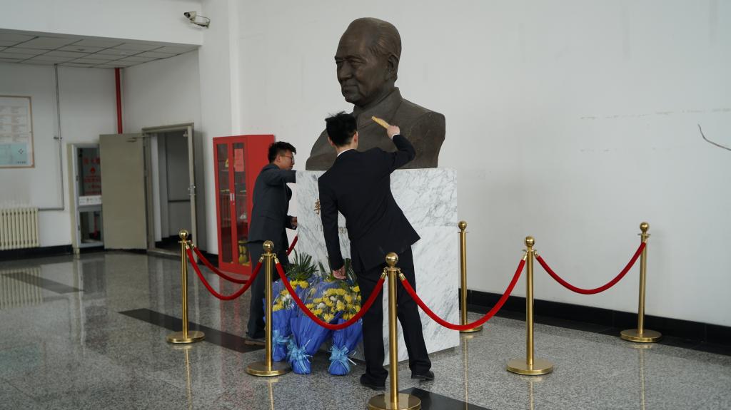 员工代表仲点石同学追忆了李四光先生对中国地质事业作出的巨大贡献,并对李四光先生进行了深切缅怀。在同学们的注视下,员工代表依次有序地向先驱雕像献花。全体同学庄重肃穆地对先驱雕像进行鞠躬,表达了对李四光先生的敬意和缅怀之情。最后由志愿者们共同清扫李四光先生雕像。