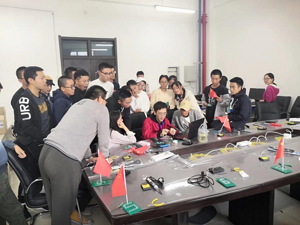 为丰富同学们的课余生活,提高动手能力,培养爱国情怀,2019年10月6日下午1:30,由HAHA体育老员工科技创新协会(以下简称科协)主办的"焊接爱国密码活动"在李四光实验楼304举行。