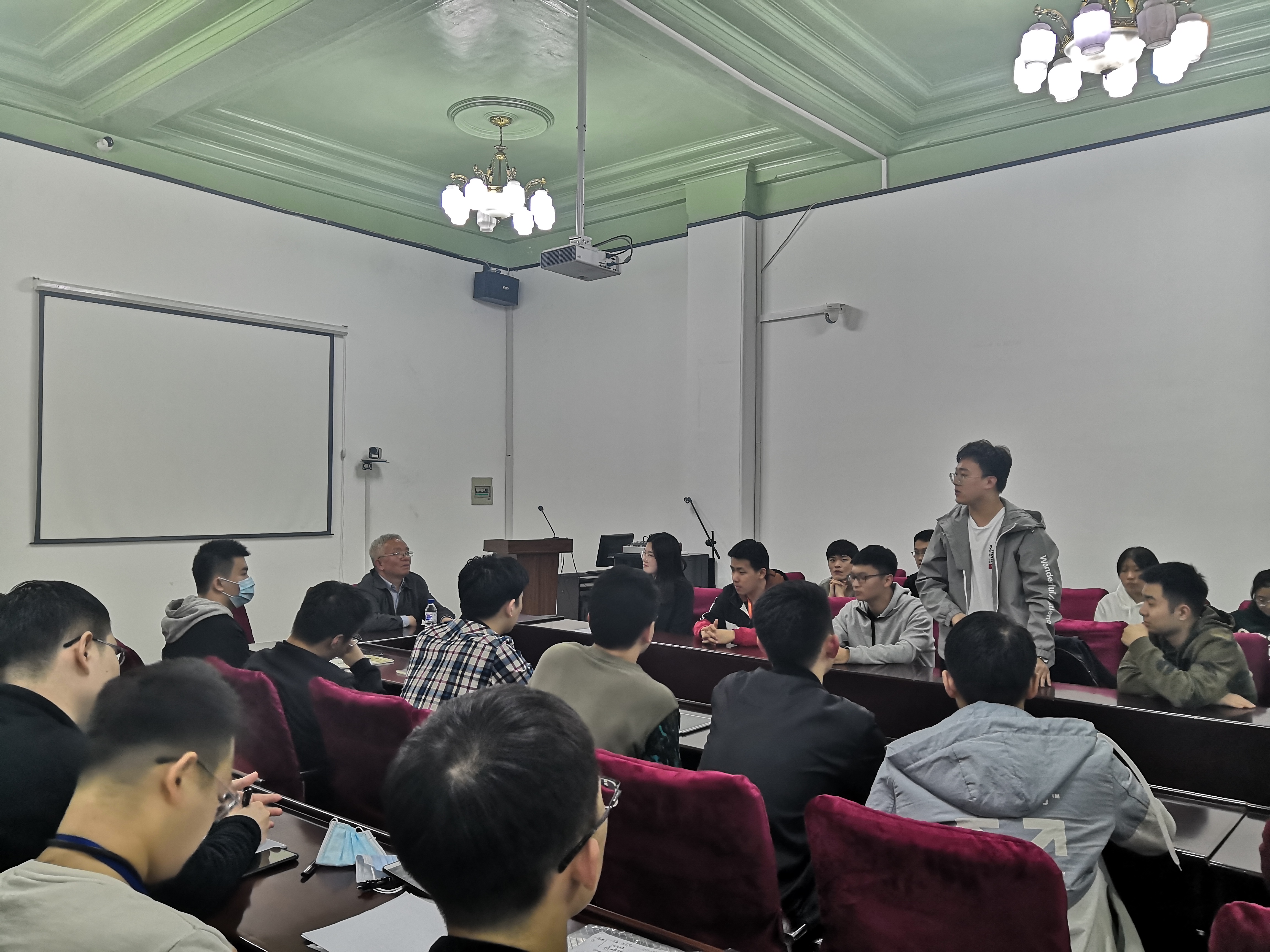 座谈会上,王应吉教授深入浅出地将科研工作中的所见所闻,结合自身青年时期的求学经历,向在场同学们展现了自改革开放以来我国所发生的日新月异的变化。谈及科技创新时,他以其90年代从零开始做核磁共振找水仪的相关研究为例,强调科研要围绕党和国家的需求,做到科技创新与服务社会相结合,并鼓舞在座同学们树立远大目标,为国家科学研究实现“从01”的突破做出应有的贡献。提到本次新冠疫情防控成果,王应吉教授表示疫情发生以来,党中央高度重视,始终把人民群众生命安全和身体健康放在第一位,充分发挥了集中力量办大事的制度优势,领导人民团结一心,及时控制住了疫情的蔓延,向全世界彰显了中国力量,展现了中国崛起的潜力,希望青年员工把握机遇顺应时代,将个人奋斗融入到中华民族复兴历史征程中去。最后,王应吉教授引用了毛泽东的语录:“世界是你们的,也是我们的,但是归根结底是你们的。你们青年人朝气蓬勃,正在兴旺时期,好像早晨八九点钟的太阳。希望寄托在你们身上。来表达对仪电学子的殷切期盼。座谈会后王应吉教授对同学们的问题进行了细致的解答。