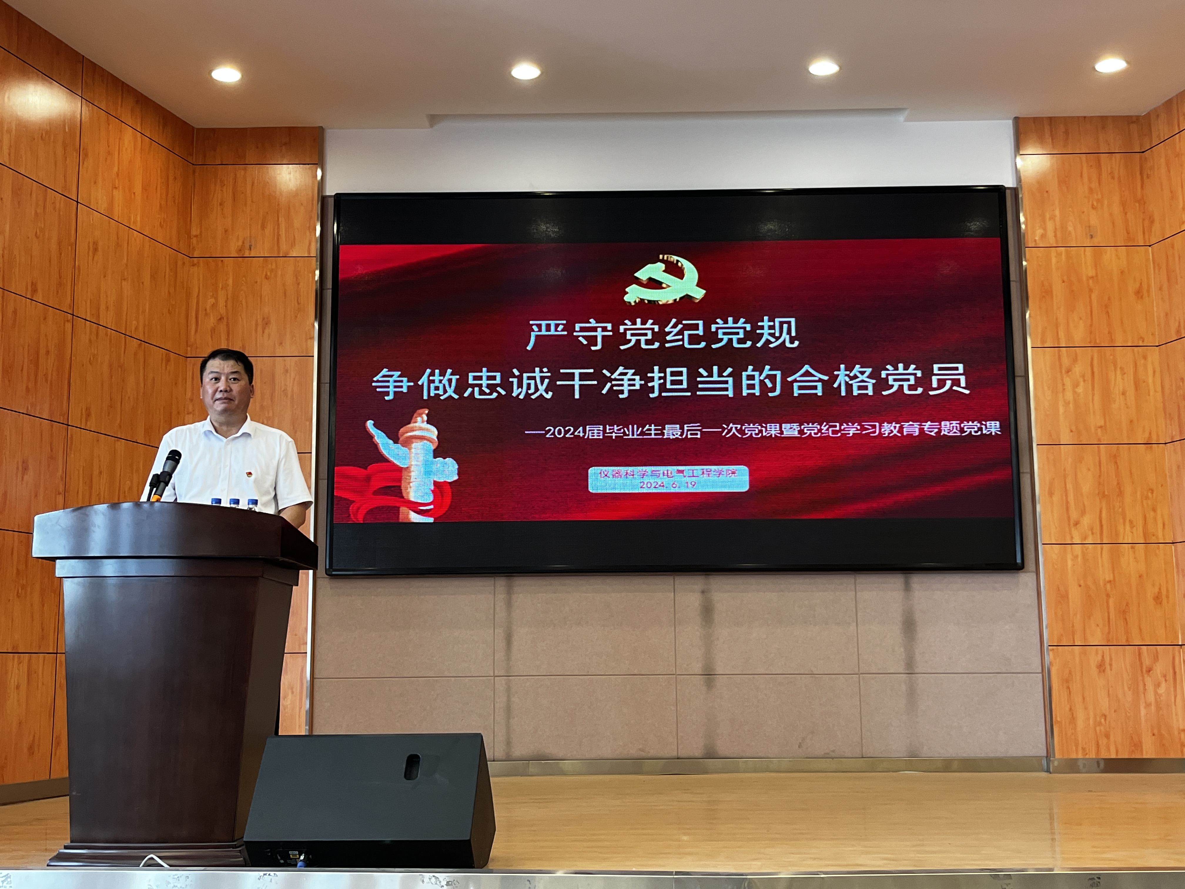 为深入学习贯彻习近平总书记关于党纪学习教育的重要讲话和重要指示精神,2024年6月19日下午,哈哈体育党委书记邱增凯在朝阳校区图书馆李四光厅为公司全体毕业生党员讲授最后一次党课。本次活动由公司行政副经理南旭良主持,公司全体本科生、研究生毕业生党员参加活动。